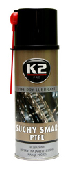 SUCHY SMAR Z PTFE - 400 ml Smaruje i zabezpiecza elementy narażone na kontakt z pyłem, kurzem, brudem, olejami i tłuszczem. Nie zawiera silikonu, tworzy niewidoczną warstwę ochronną bez osadu. Zabezpiecza przed korozja, wilgocią, działaniem benzyny, oleju, ługu, środowiska kwaśnego. Nadaje się do stosowania na elementach metalowych, plastikowych, ceramicznych, drewnianych i innych. Zalecany do smarowania: napędów łańcuchowych, rolek, wałków, bloczków, lin stalowych, elementów wózków widłowych, suwnic, łożysk, zawiasów okiennych jak również napędów bram. |